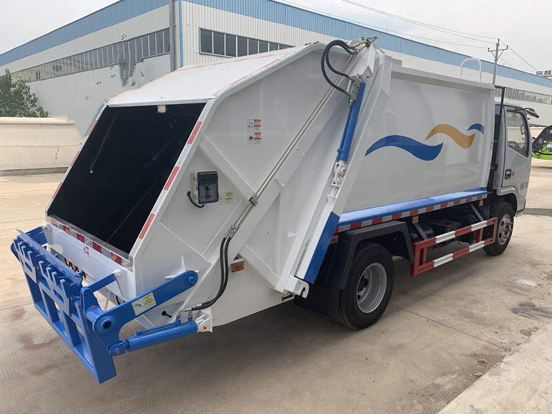 上裝配置:新款平面弧形廂體,廂體材料為武鋼優(yōu)質(zhì)碳鋼邊3底4mm厚,有效壓縮容積5-6立方,9支液壓油缸制動,PLC一鍵操作控制,手電一體操作模式,兩側(cè)雙電控,帶駕駛室內(nèi)操作,底板支撐加強(qiáng),雙向壓縮,開放式易清潔污水箱。壓縮式垃圾車采用機(jī)電液一體化技術(shù),借助機(jī)、電、液聯(lián)合自動控制系統(tǒng)、電腦控制、手動操作系統(tǒng),通過填裝器和推鏟等專用裝置,實現(xiàn)垃圾倒入、壓碎或壓扁、強(qiáng)力裝填,把垃圾擠入車廂并壓實和推卸,污水全部進(jìn)入污水廂,解決了垃圾運輸過程中的二次污染的問題。壓縮式垃圾車具有自動反復(fù)壓縮以及蠕動壓縮功能,壓縮比高、密封性好、裝載量大﹑操作方便、環(huán)保性好﹑整車?yán)霉β矢叩葍?yōu)點。作業(yè)自動化,垃圾收集方式簡便、高效。后翻轉(zhuǎn)機(jī)構(gòu)選裝:1、掛塑料桶式翻轉(zhuǎn)機(jī)構(gòu);2、掛鐵桶式翻轉(zhuǎn)機(jī)構(gòu),可掛標(biāo)準(zhǔn)塑料桶240/660升;3、擺臂式翻轉(zhuǎn)機(jī)構(gòu); 4、簸箕斗式翻轉(zhuǎn)機(jī)構(gòu)。